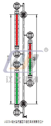 UGL系列超長型石英玻璃管液位計是把多臺石英玻璃管液位計交錯連接在一起與容器上的法蘭連接構成連通器, 利用自然光在液體中透、折、反射的光學原理來顯示液位或界位。該系列儀表也可實現全程無盲區顯示。